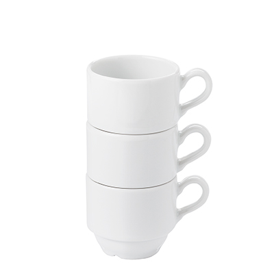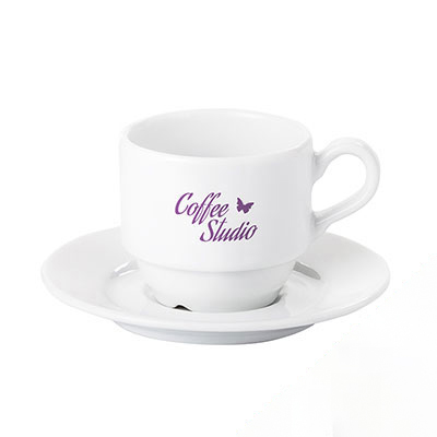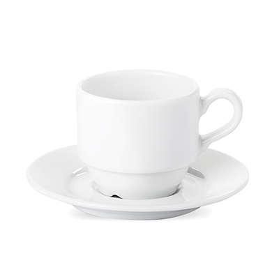 Grubościenna filiżanka za spodkiem dedykowana do kawy espresso. Produkt jest końcówką serii, mogą na nim występować nakłucia, kropki oraz różnice w odcieniu szkliwa.